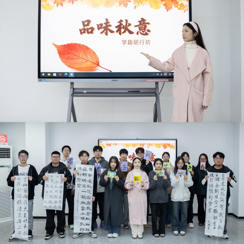 11月30日下午,机械与交通学院学趣砺行坊书法社在一站式服务中心举办“一叶知秋·笔墨传情”主题活动,以落叶为媒,书法为笔,为校园秋日增添一抹文化暖意。