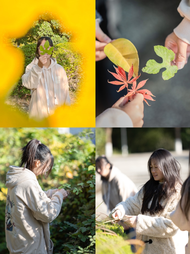 活动现场书香与秋意交织,创意十足。社员们将收集的梧桐叶、枫叶等干燥落叶作为画布,结合书法技艺创作个性化书签与挂件。从树叶压平处理、书法字体选择,到挂件组装串联,每一步均体现匠心。创作的成品兼具实用性与艺术性。更有学生别出心裁,在作品旁点缀干花或贴纸,赋予秋日文创更多趣味。