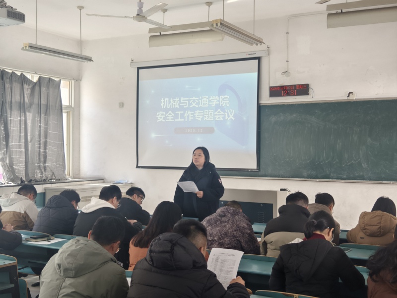 为深入贯彻落实学校关于安全工作的部署要求,切实保障学生安全与校园稳定,12月3日,机械与交通学院召开安全工作专题会议,全体辅导员、班主任参加会议。