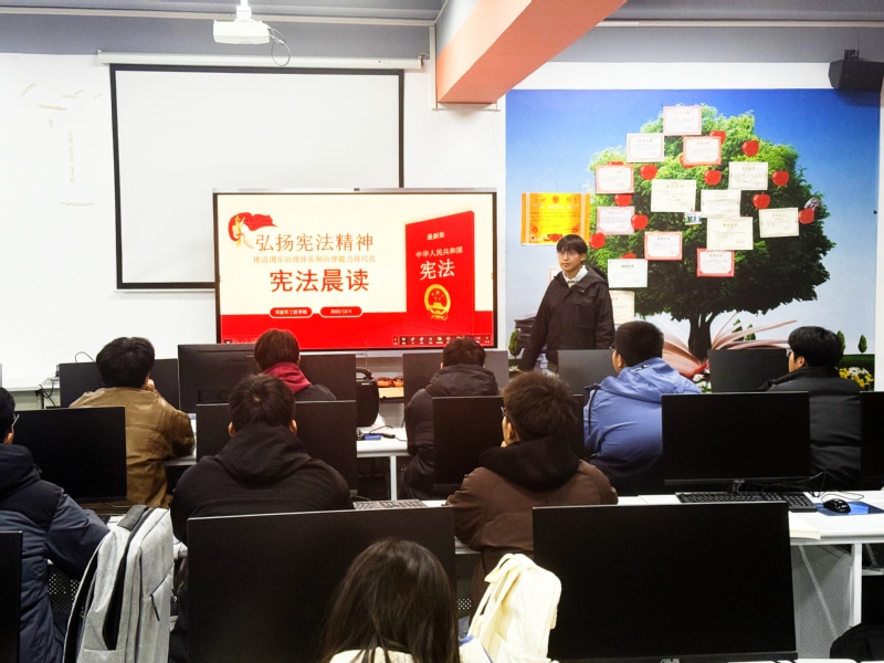 12月4日,学生在组织下通过线上直播同步参与全国“宪法晨读”活动。在琅琅书声中,同学们加深了对宪法核心内容的理解。