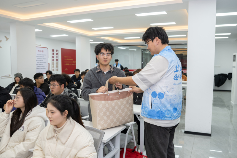 互动解疑惑,慰问暖人心。互动环节气氛热烈,受资助同学围绕资助申请细节、评选标准等问题与宣讲人及志愿者展开了深入交流。现场双向沟通顺畅高效,受资助学子也分享了自己的成长感悟,讲述了从接受资助到努力奋进、积极参与志愿服务的转变,展现了“受助于校、感恩于心、助人于行”的良好风貌。同时,学院秉持发展型资助育人理念,将关爱细化至生活末梢,为家庭经济困难学生精心准备了保温杯、毛毯、文具等生活用品,以实际行动传递冬日温情,让这个寒冬充满暖意。