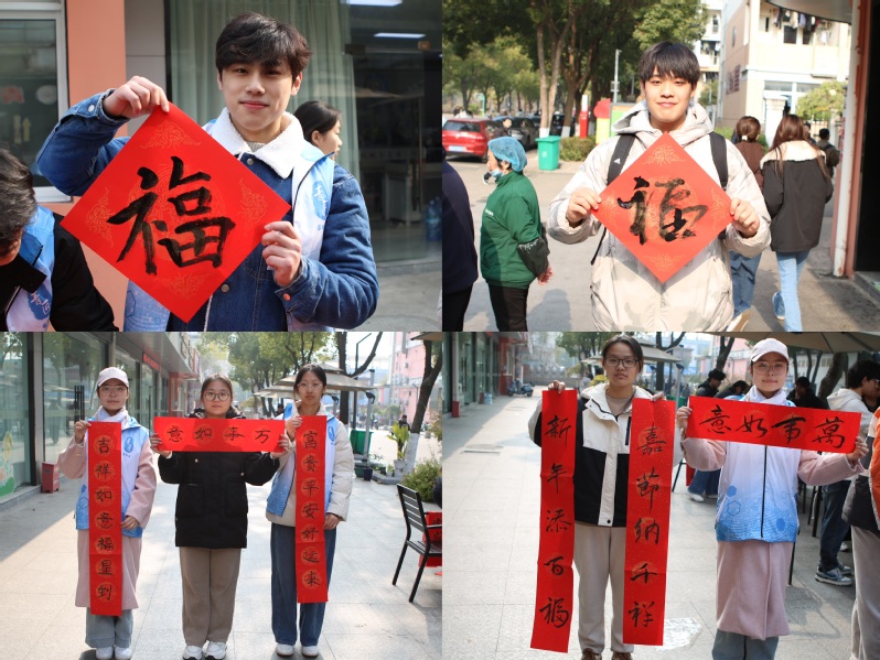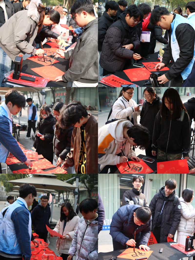 活动现场,书法社成员挥毫泼墨,笔走龙蛇,一副副饱含祝福的春联和“福”字跃然纸上。学院学生会志愿者们分工协作,引导同学有序参与,并提供个性化定制服务,满足不同需求。不少同学表示,亲手书写的春联既有年味,又承载着美好寓意,让人感受到浓厚的节日氛围。此次活动共送出春联与“福”字数百,不仅丰富了校园文化生活,也展现了书法艺术的独特魅力,成为年末校园一道亮丽的风景线。
