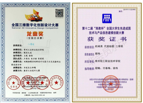 专业学生在全国职业院校技能大赛、“挑战杯”全国大学生课外学术科技作品竞赛、中国“互联网+”大学生创新创业大赛、全国三维数字化创新设计大赛、全国大学生先进成图技术与产品信息建模创新大赛等各类省级以上赛事荣获大奖十余项。