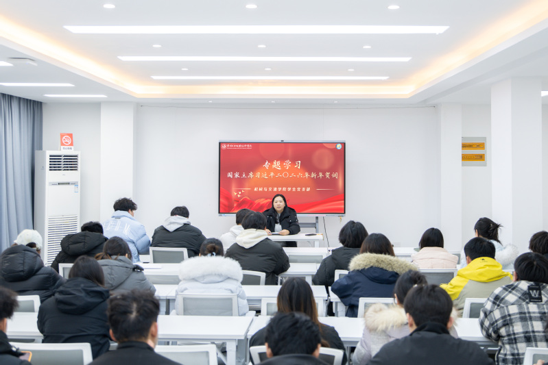 1月7日,机械与交通学院学生党支部以“领悟贺词精神,勇担青春使命”为主题,组织全体入党积极分子开展习近平二〇二六年新年贺词专题学习活动。活动通过原文研读、主旨解读、学习研讨、实践倡议等多种形式,引导青年学子将贺词精神与专业学习深度融合,在“十五五”开局之年凝聚奋进力量。