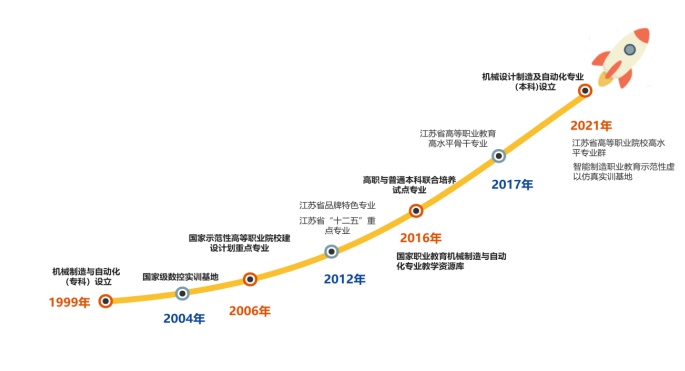 本专业由1920年办学之初的机械制造与自动化、机械设计与制造等专科专业组成,先后入选国家示范建设重点专业、江苏省特色专业、江苏省重点专业群、江苏省高等职业教育高水平骨干专业。建有国家级数控实训基地,全国机械行业职业院校先进制造技术促进与服务基地,江苏省现代产业学院,江苏省双师型名师工作室,江苏省精密制造工程技术研究开发中心。