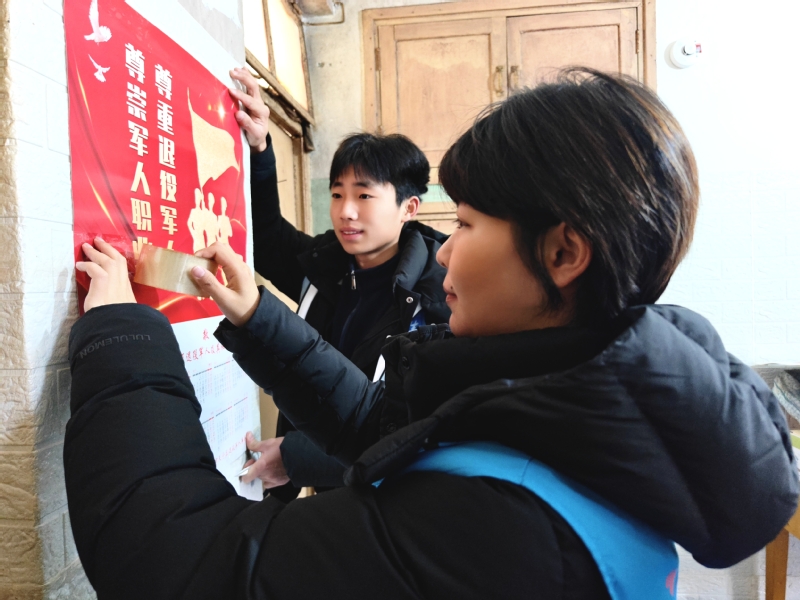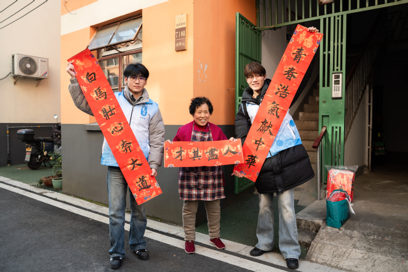 活动伊始,在社区工作人员的引导下,志愿者们前往孤寡老人家中与老人促膝长谈,针对腿脚不便的老人,志愿者们主动拿起清洁工具,擦拭门窗、清扫地面、整理杂物,将老人家中打扫得整洁有序,用细致的关怀温暖了老人的孤寂时光。临别之际,志愿者们为老人送上亲手书写的新春对联,红底黑字的对联承载着浓浓的年味与美好祝愿,让老人脸上洋溢起幸福的笑容。