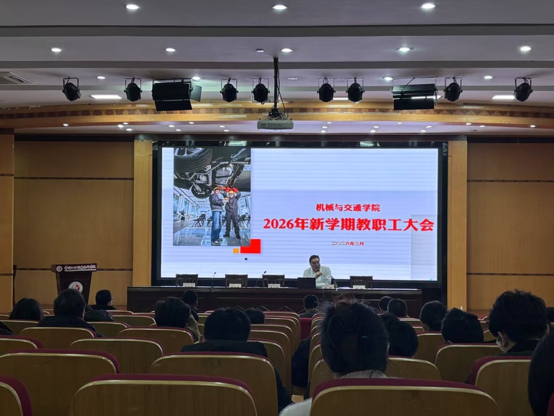 春启新程,奋进正当时。为明确新学期工作方向,凝聚全院教职工奋进力量,确保各项工作有序开局、扎实推进,3月8日,机械与交通学院召开“凝心聚力担使命 攻坚奋进启新程”2026年新学期教师大会。学院领导班子全体成员及全体教职工参加会议,会议由学院党总支书记唐一鑫主持。