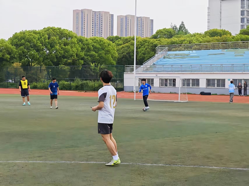 赛场外,保障温暖有力。比赛期间,学生会工作人员全程值守,负责记分、计时、维持秩序,并随时关注场上球员的身体状况。中场休息时,及时递上饮用水和毛巾。啦啦队的呐喊声与助威声此起彼伏,为比赛增添了热烈的氛围。尽管天气微凉,球员们依旧热情不减,在场上相互鼓劲、彼此配合,用汗水书写着对足球的热爱。