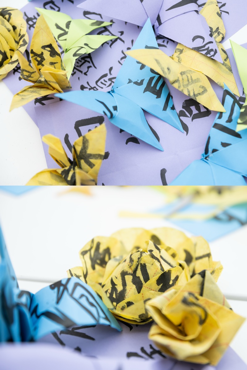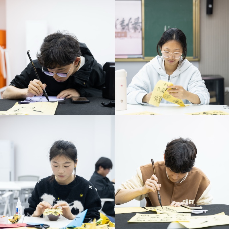 活动紧扣谷雨节气文化,讲解节气由来与习俗,开展谷雨节气主题书法创作,书写诗词与励志寄语。在书法创作环节,现场备齐笔墨纸砚与谷雨主题诗词、励志寄语模板,同学们挥毫泼墨,书写“雨润万物,学有所成”“不负春光,前程似锦”等美好祝愿,作品可装裱成书签、搭配干花装饰,尽显谷雨诗意。纸艺制作环节,大家发挥想象折出象征生机的纸蝴蝶、呼应牡丹意象的纸玫瑰,巧手匠心间,春日美好跃然纸上。完成的作品或自行留存,或张贴于“谷雨心愿墙”,一句句心愿、一件件手作,凝聚起同窗情谊与青春朝气。